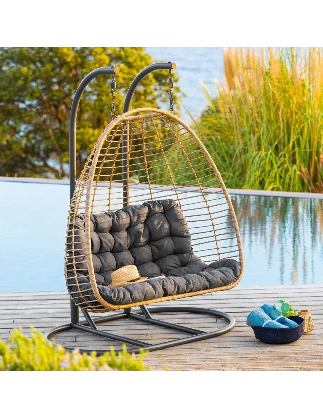 Fauteuil œuf Suspendu AJAR Ardoise 2 Places
