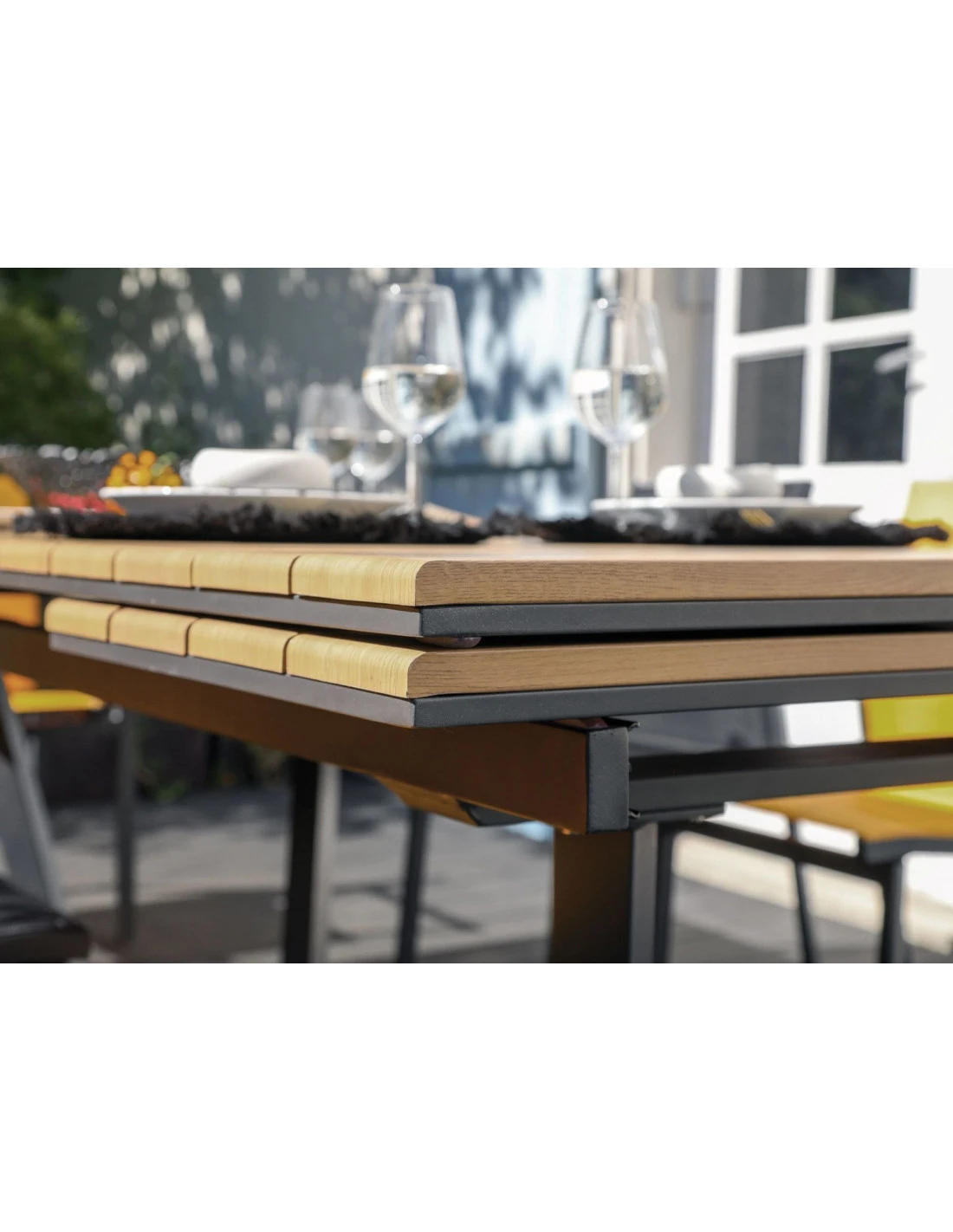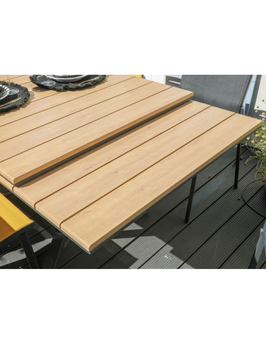 Table De Jardin Agra 150/200/250 Cm – Plateau à Lames HPL Fundermax – Graphite / Cave