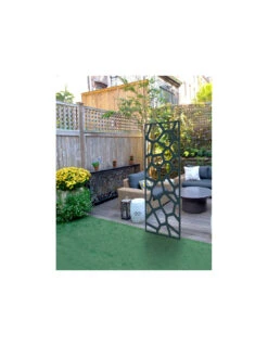 Treillis en bois traité autoclave classe III teinté marron.